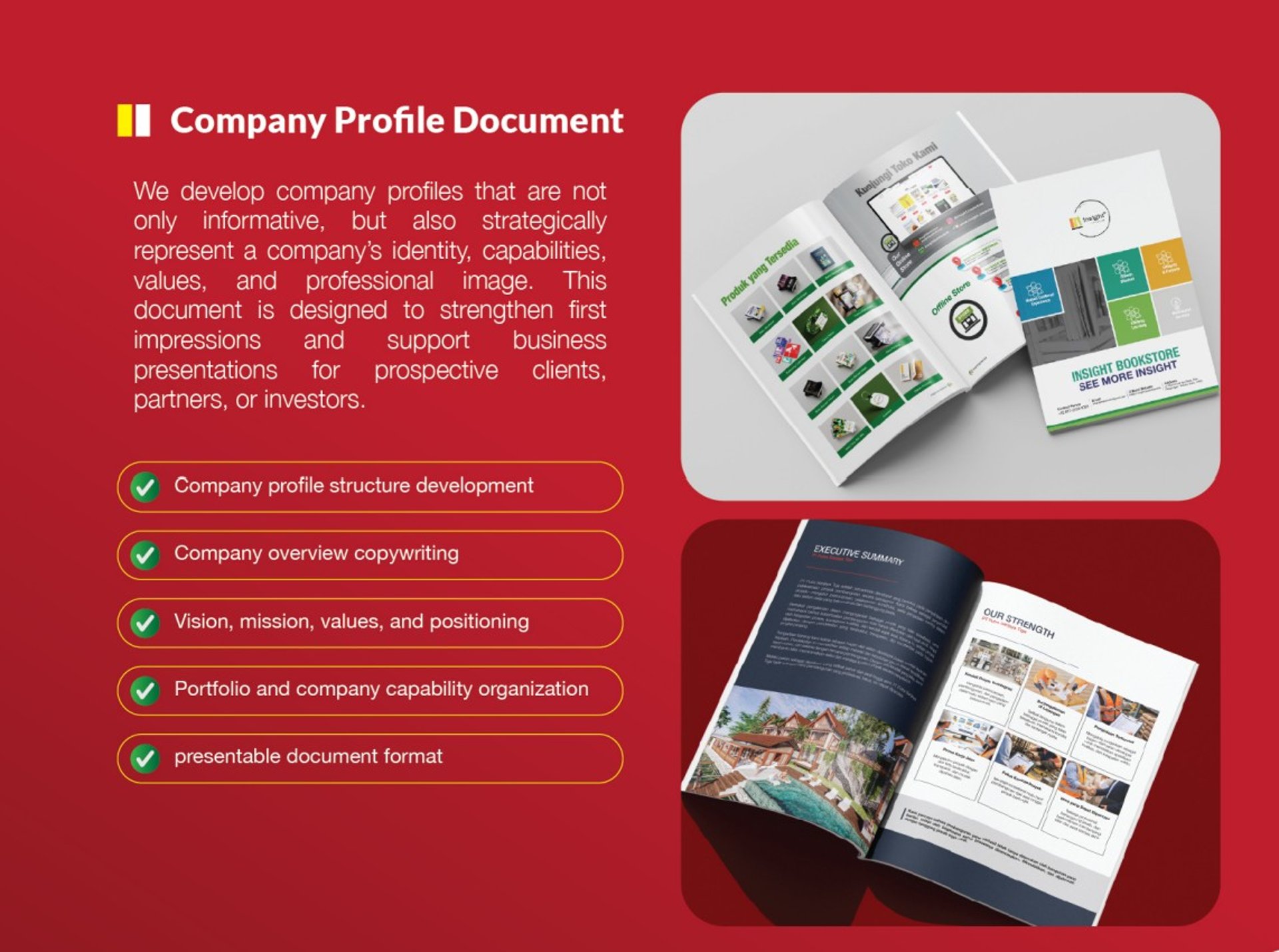 We provide comprehensive marketing communication solutions designed to strengthen your brand positioning and effectively convey your value proposition to target audiences. Our services focus on creating compelling, high-quality materials that support business growth, investor engagement, and client acquisition.